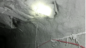 本产品为采用多种无机材料组合而成的单组份复合聚合物,具有较好的粘结性能,较低的黏度能迅速渗入待修复的破损面,较强的粘附力将其与受喷面连接形成致密坚韧封闭层。联合作用产生较高薄喷层强度和良好的变形性能,能够与围岩紧密贴合发挥加固封闭作用,且能随卷道变形而不易发生开裂、脱落。本产品固化快,可实现快速修复施工;施工设备轻便简单,有利于狭窄空间作业;固结物性能稳定,不收缩、不开裂、不脱落;施工过程中无热、无腐蚀、无有毒气体、无粉尘释放,实现绿色环保作业。