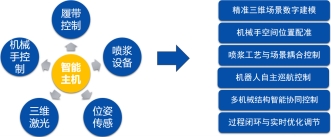薄喷用自动化喷涂机主要适用于煤矿、金属矿及化工等各类矿山巷道、隧道等作业面的喷涂施工,配备以激光测距传感器为技术支撑的智能化喷涂控制系统、智能自动导航行走系统,可实现自动导航,自动行走和自适应喷涂。具备自动上料、拌料和自清洁一体化功能,并能实现喷涂和供料的自动协调。该套装备作为我国煤矿井下煤巷喷涂设备的最新研究成果,降低了工人的劳动强度,大幅提升了喷涂施工效率与效果,有利于提高矿山智能化水平。